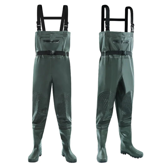 Unisex Nylon Chest Waders with Steel Toe Boots Green Waterproof Performance Gear for Men-for Fishing and Hunting