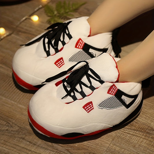 Unisex Cozy Fleece-Lined Slip-On Shoes, Non-Slip Fabric Sole, Warm Home Loafers, Striped Pattern, Fall/Winter Footwear, Over 14 Years, Comfortable Plush Slippers for Men and Women