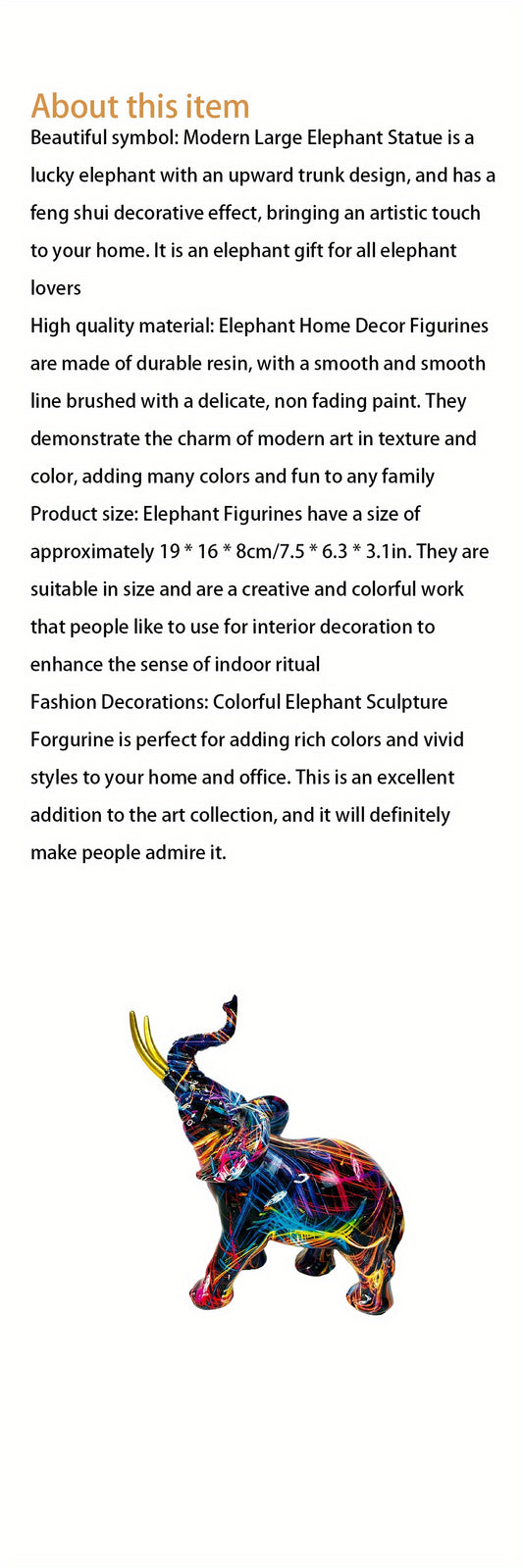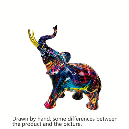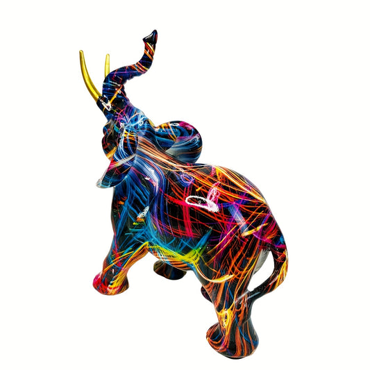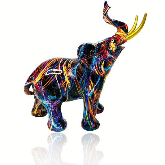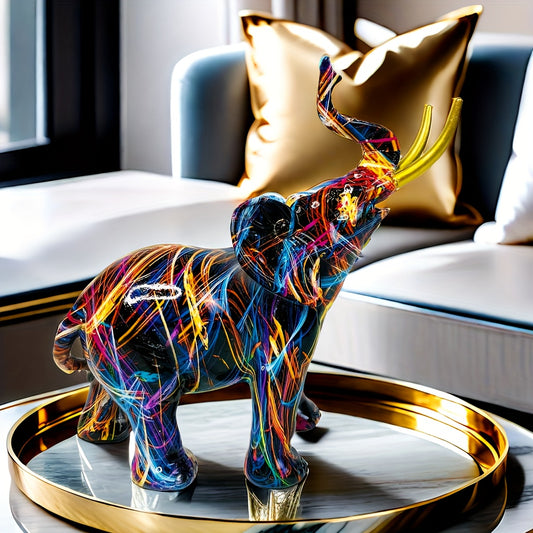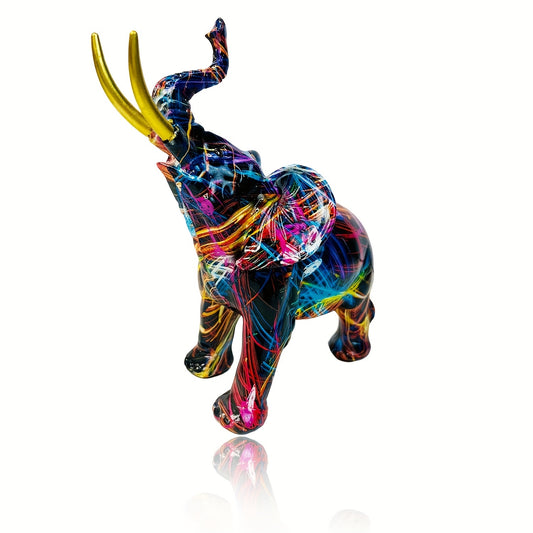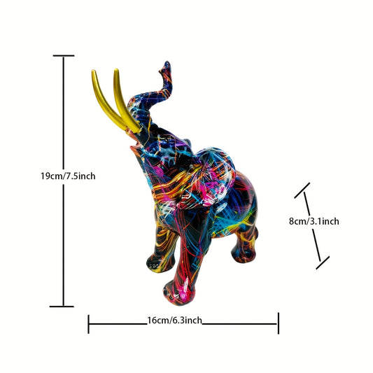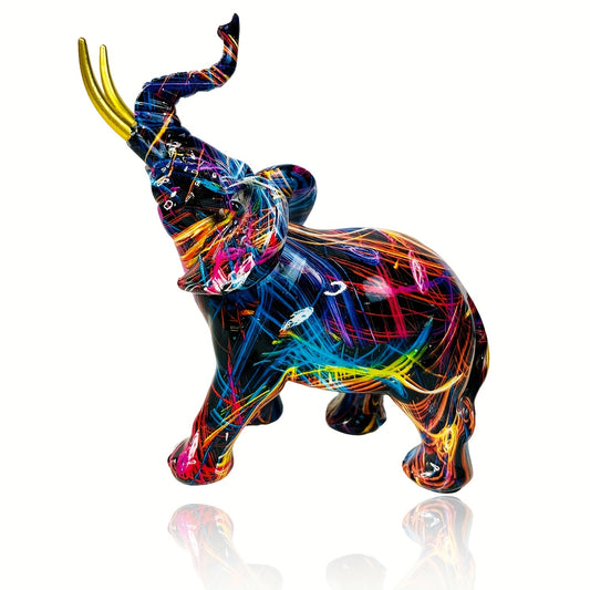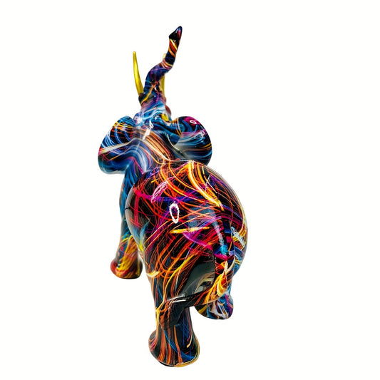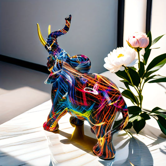 Vibrant Multicolor Resin Elephant Statue - Abstract Art Sculpture with Dynamic Design, Durable Indoor/Outdoor Feng Shui Decor for Home, Office, Kitchen Shelf - No Electricity Needed, Elephant Decor