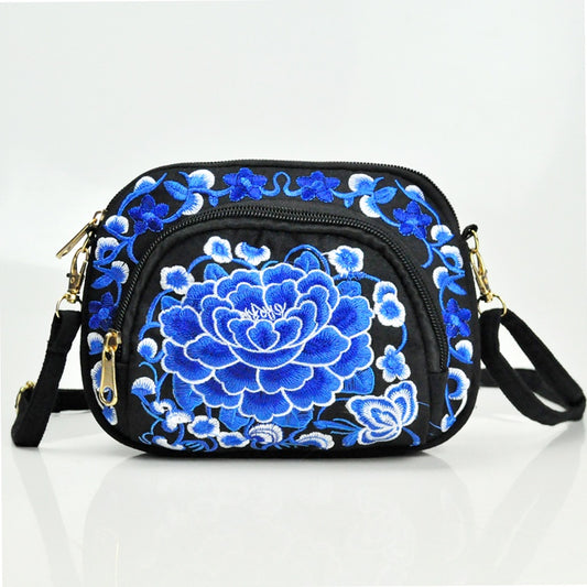 Vibrant Floral Embroidered Crossbody Bag for Women - Lightweight, Double-Sided Design with Detachable Strap, Zipper Closure, and Phone Pocket - Perfect for Casual Outings, Travel Accessory | Vibrant Pattern Bag | Coin Purse