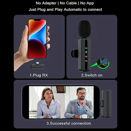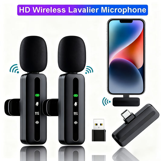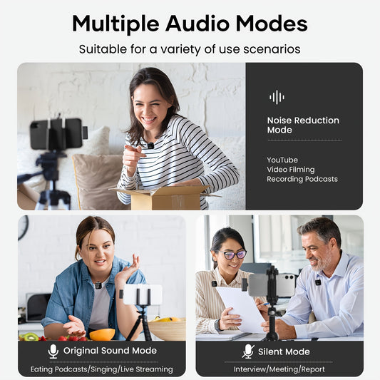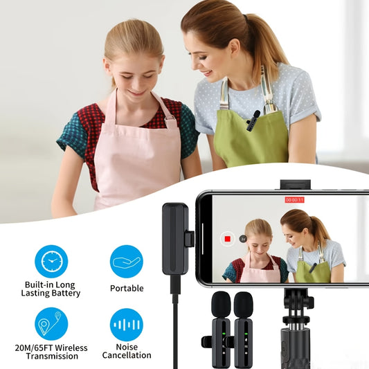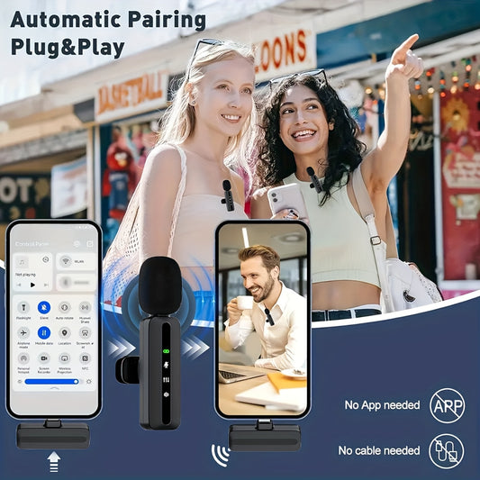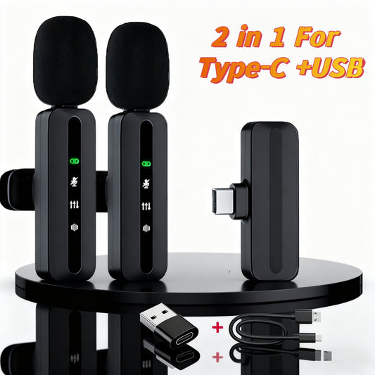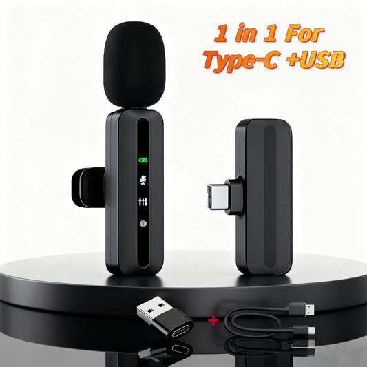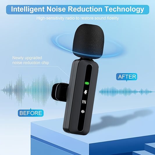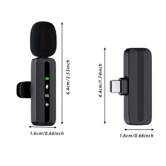 Wireless Lavalier Microphone with USB Accessories, Suitable for USB Type-C, Multiple Noise Reduction Modes, 65-Foot Range, Rechargeable Lithium Polymer Battery, Used For Recording And Interviewing, Outdoor Exploration