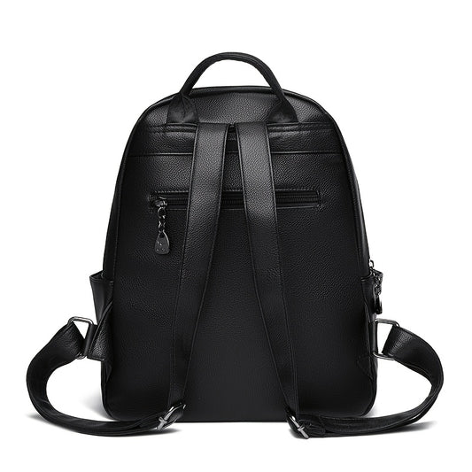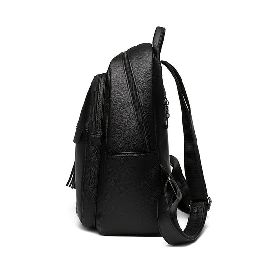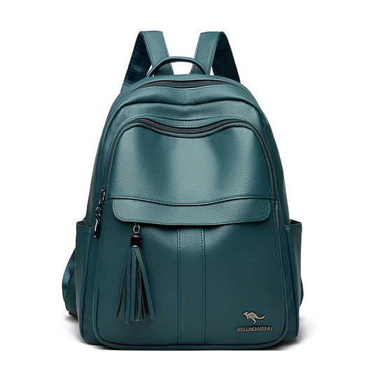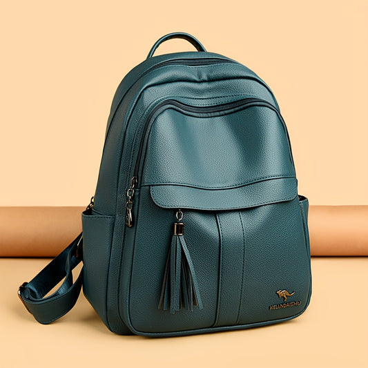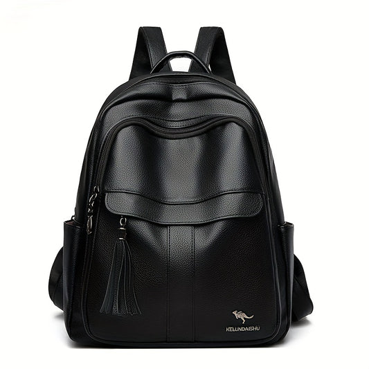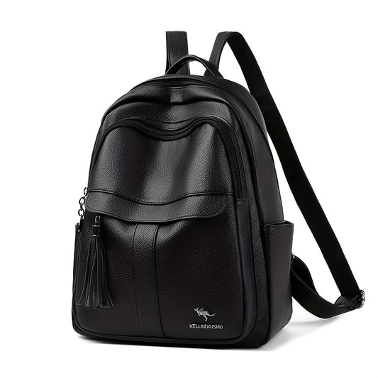 Women's 2025 New Style Synthetic Backpack with Tassel Charm - Glossy Black Soft Shell Travel Backpack, Detachable Adjustable Shoulder Straps & Zipper Closure, Spacious Laptop Compartment & Practical Pockets for Work, School,