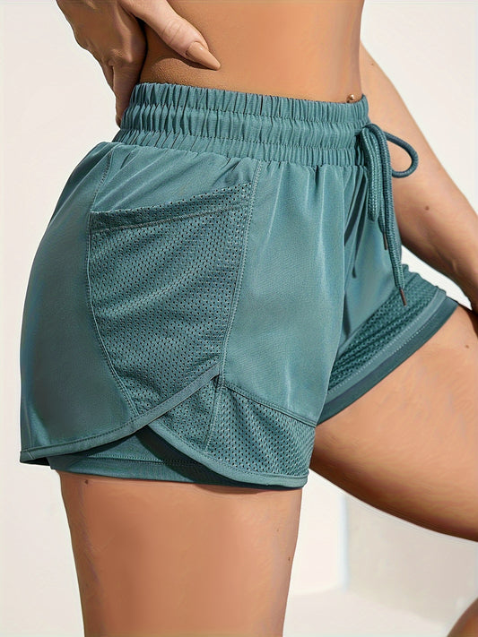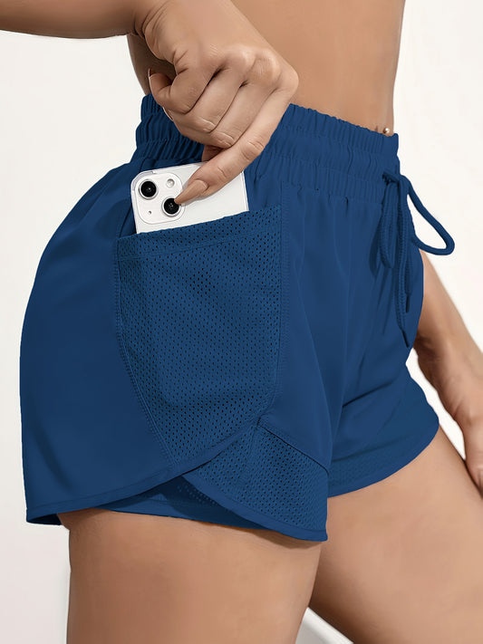 Women's 2-in-1 Yoga Shorts With Quick-Drying Fabric And Mesh Pockets For Casual Fitness And Gym Workouts