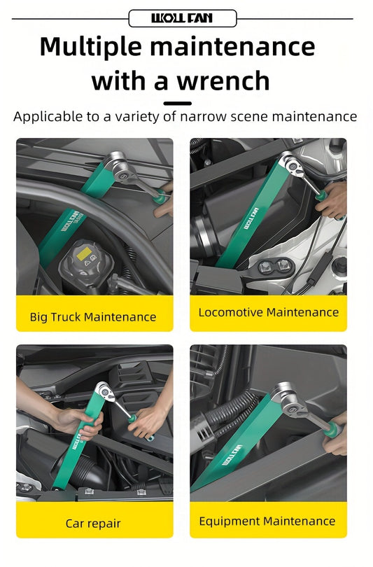 WOLLFAN Multi-Functional Extension Wrench, 39cm/15.35inch, Ratchet Conversion, Narrow Extension, Quick Release Socket, Universal Tool for Car Maintenance, Durable Material