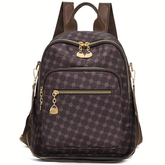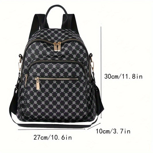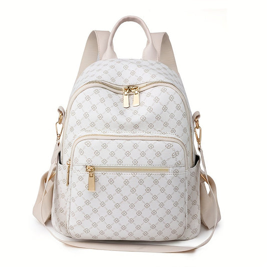 Women's Clover Backpack - Large Capacity, Adjustable Straps,, Zip Closure, Geometric Pattern, Beige//Black, Casual College Style, Perfect for Students and Travel, Backpack for School