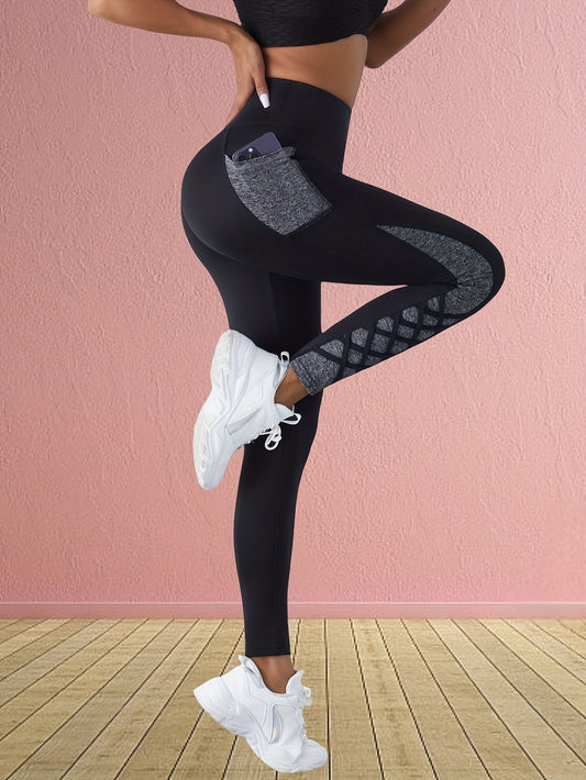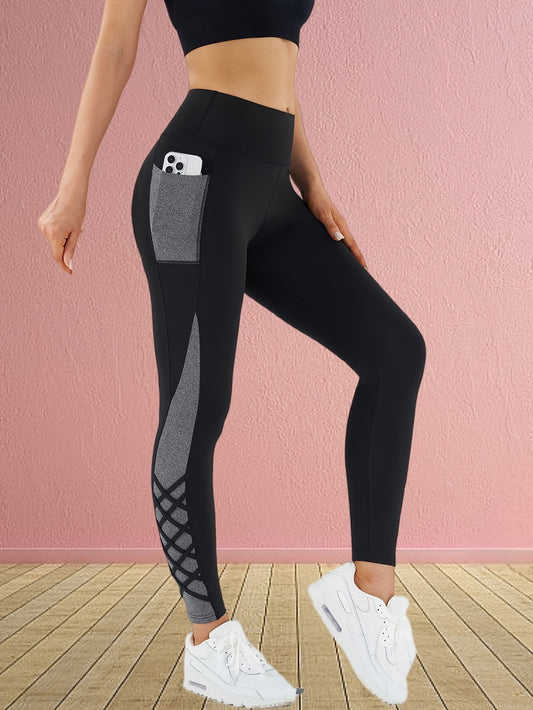 Women's Activewear: Mesh Stitching Yoga Leggings With High Waist Side Pockets For Fitness & Gym Sports