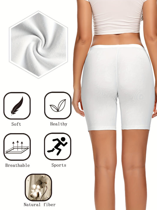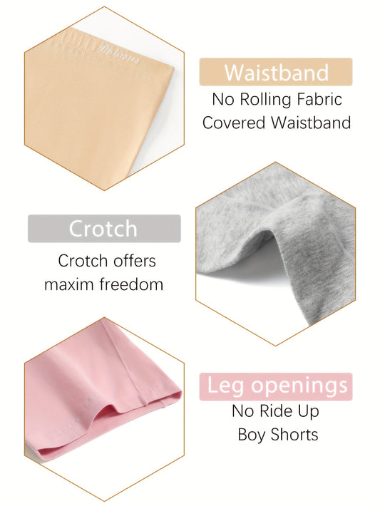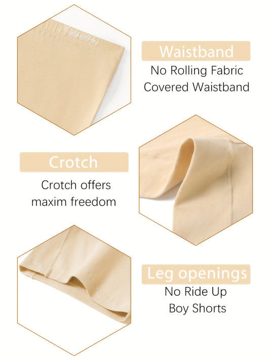 Women's Cotton Boyshorts Underwear 4-Pack - Comfortable Full Coverage Boxers, Knit Fabric, Solid Color, Simple Style, 95% Cotton 5% Spandex
