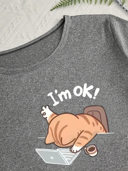 Women's 3pcs Pajama Set, Cartoon Work Kitten Print Short Sleeve Pajamas, Shorts and Longs - Bow Style, Suitable for Multiple Seasons