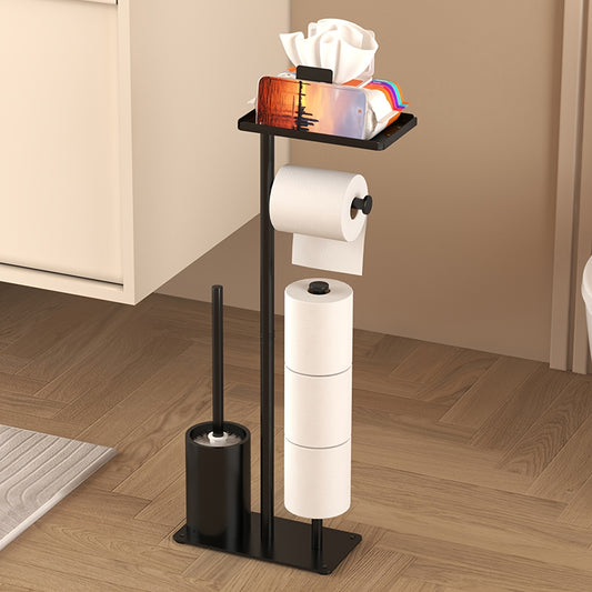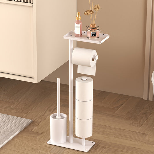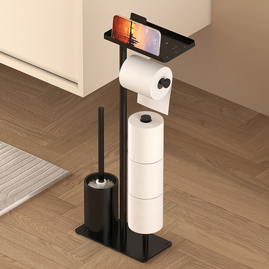 1pc Freestanding Toilet Paper Holder with Storage - Self-Adhesive Wrought Iron Bathroom Organizer, Space-Saving Design for Tissues & Rolls, Modern Minimalist Style, Perfect for Living Room or Bathroom Decor, Ideal Christmas/H