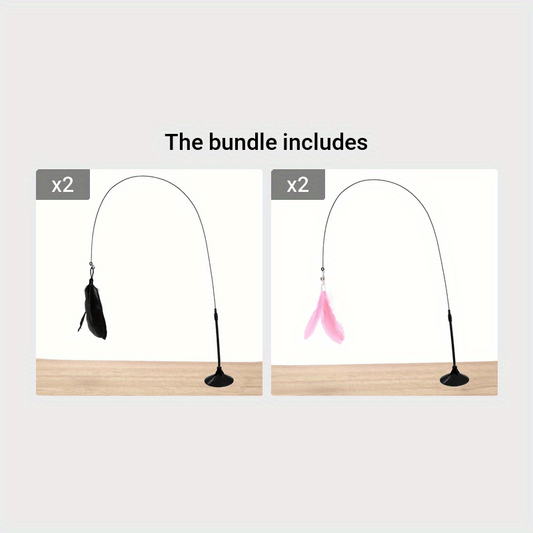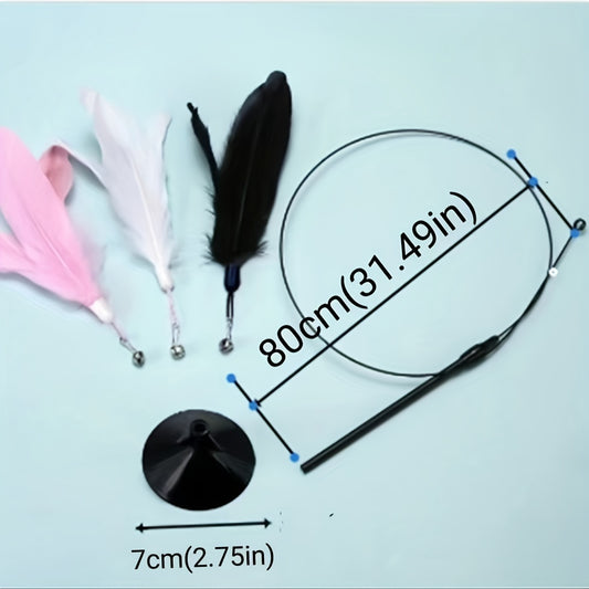 1pc Feather Decor Cat Teaser Stick Toy, Durable Cat Chew Toy With Bell And Suction Cup For Cat Interactive Supply