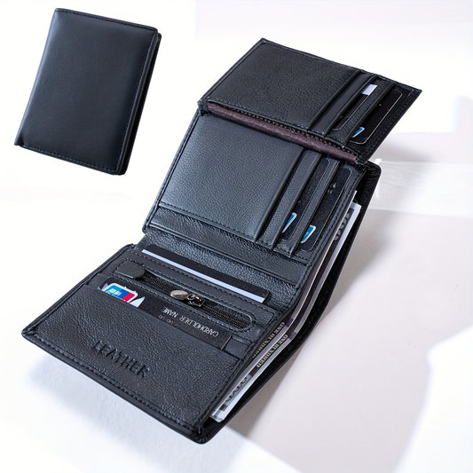 1pc Genuine Leather Wallet - Slim Vertical design, Compact Credit Card Holder & Coin Purse with ID Window, Elegant Minimalist Wallet for Men & Women, Everyday or Formal Use - Perfect Gift for Dad, Husband, Boyfriend (Christma