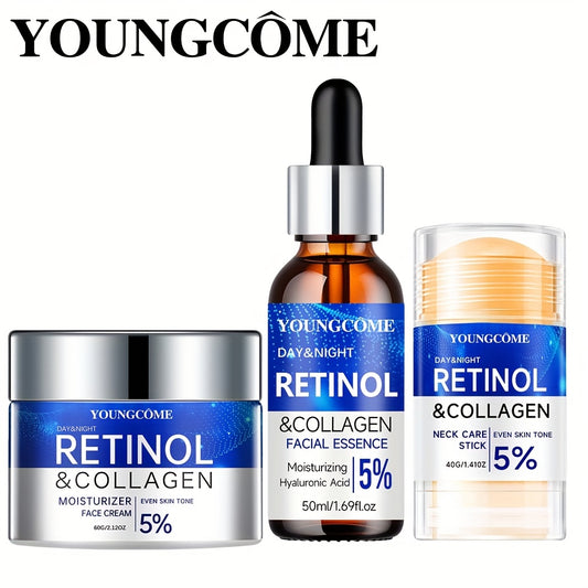 YOUNGCOME Retinol+collagen complex+hyaluronic acid Light Beige care set, powerful moisturizing face cream and firming essence, three piece neck care stick, alcohol free, suitable for all Light Beige types,make Light Beige you