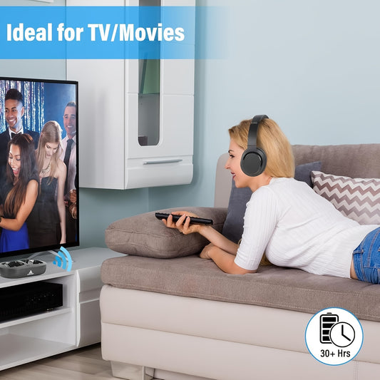 YUANJ 2025 Wireless Over-Ear TV Headphones Wireless, 28H Playtime, Plug & Play, -C, No Delay, Noise-Free Sound for PC/Laptop/Tablet/Smartphone, Headset with Voice for Movies/Video Calls (Compatible with Smart TVs), Noise Canc