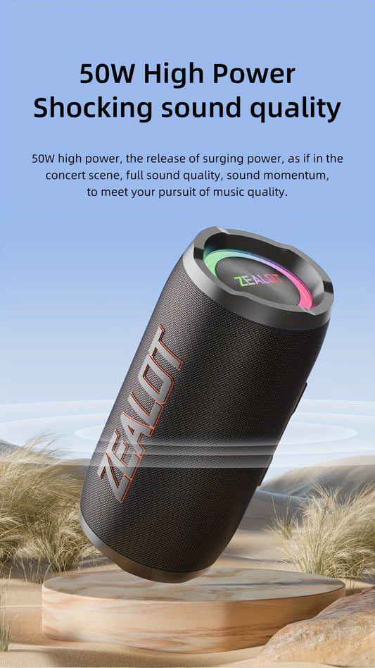 ZEALOT S76 50W Wireless Speaker, Outdoor Portable with RGB Lighting, 8-Hour Playtime, Supports Phone, Tablet, PC, TV. SD, USB, AUX, Dual Pairing Function, Suitable For Car, Camping, Beach, Party