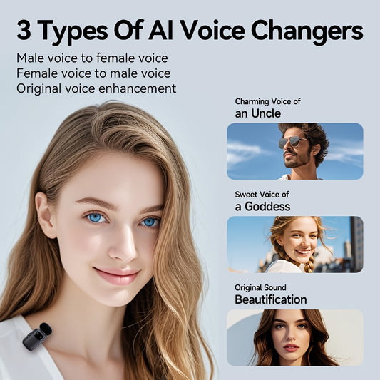 ZEALSOUND T1 Mini Wireless Lavalier Microphone with AI Noise Cancellation & Voice Changer, USB-C Portable Lapel Mic, Plug & Play Wireless Mic with Stand, Built-in Battery Display, Compatible with Android/Phone/PC/Laptop for S