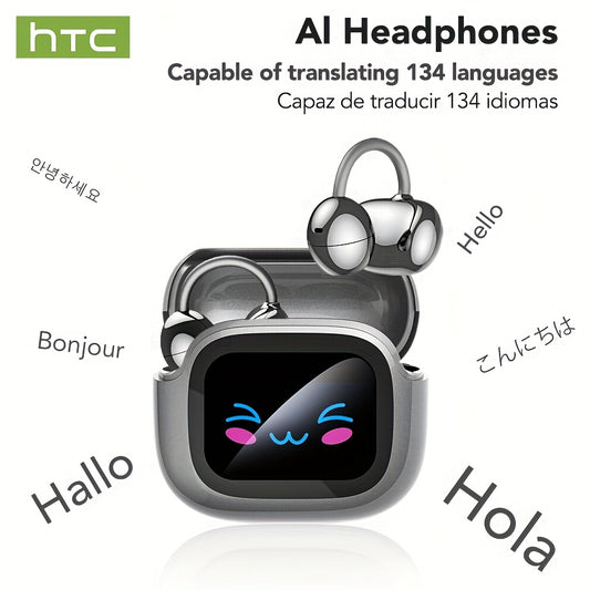 1pc HTC NE32 AI Translation Headset with 134+ Language Support, Wireless 6.0 Wireless, Touch Controls & Built-in Mic, Real-Time Translation Device for Travel, Business, Study, Sports - Compatible with Smartphones (USB-C Charg