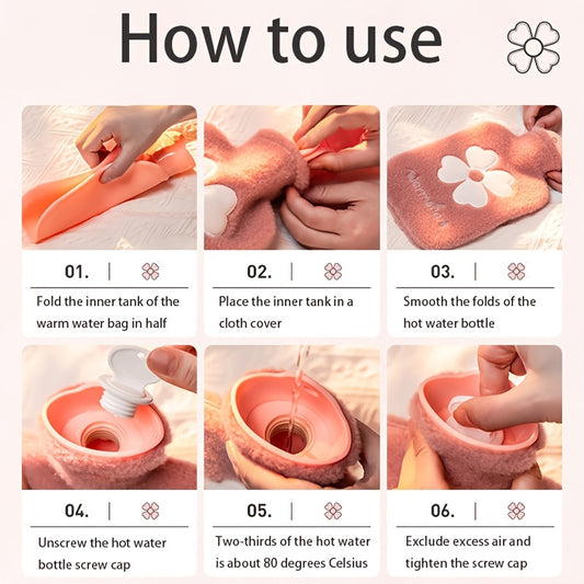 1pc Hot Water Bag With Soft Cover, 17.63oz/35.27oz, Hot Water Bottle For Bed, Shoulder Pain And Hand Feet Warmer, Menstrual Cramps