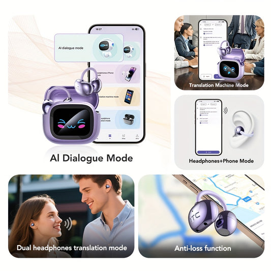 1pc HTC NE55 AI Translation Earbuds Real-time Translation Headphones OWS Open-Ear Wireless Headphones, Latest BT V6.0, Noise Reduction Clear Call, 6.5 Hours Music Long Battery Life, Big speaker Big Volume, Wired Headphones, H