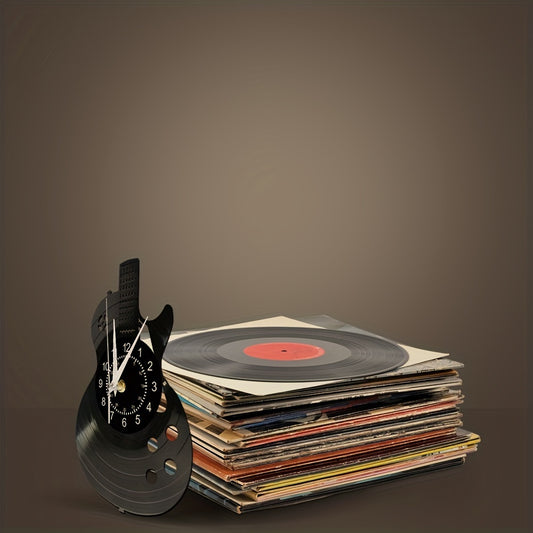 1pc Guitar Vinyl Wall Clock Gifts For Holiday, Black Music Wall Clock Instrument Art Unique Gifts For Men Women Guitar Player For Birthday Wall Decor, Fall Halloween Decor