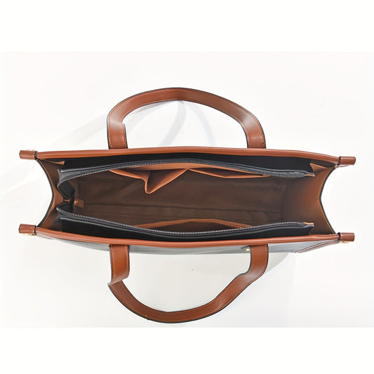 Women's Professional Handbag - Large Capacity Tote & Briefcase, Work Bag with Zipper Closure, Elegant Minimalist Purse for Office, Commute, Formal/Casual Events - Coffee Brown/Beige/Black, Formal Event Accessory, Quilted Patt