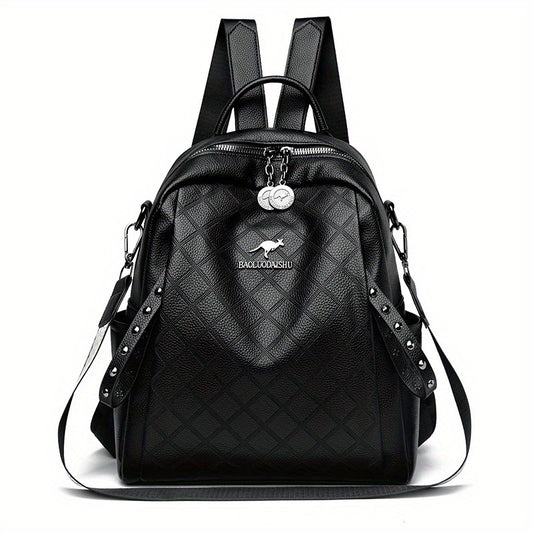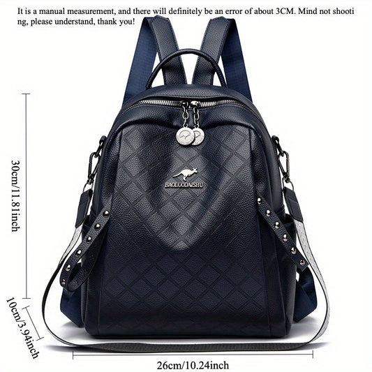 Women'S Quilted Backpack - Stylish Synthetic Travel & Casual Bag with Multiple Compartments, Adjustable Padded Straps, and Zipper Closure, Black/Red/Blue, Backpack for Travel, Secure Daypack, Quilted Texture, Synthetic Bag