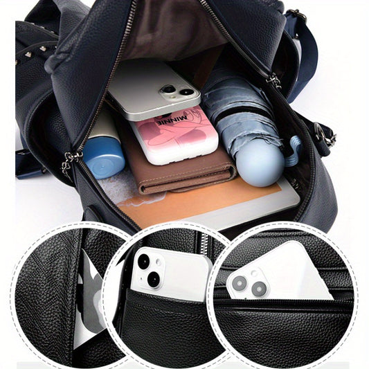 Women'S Retro Backpack - Solid Color BrownRed/ - Adjustable Strap, Zipper Closure, - Durable Casual & Office Bag for Everyday, Travel - Easy-clean Design, Backpack For Travel, Vintage Style, Daily Commute, Classic Look, Sturd