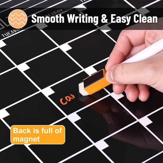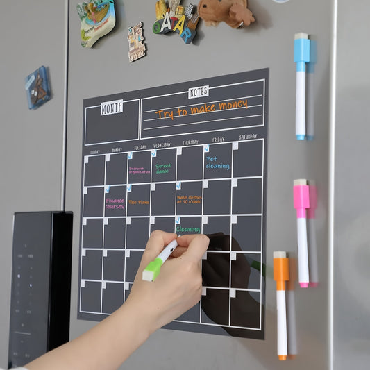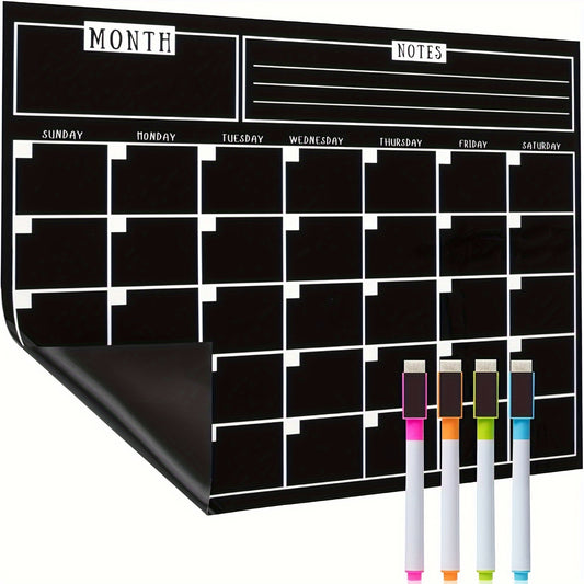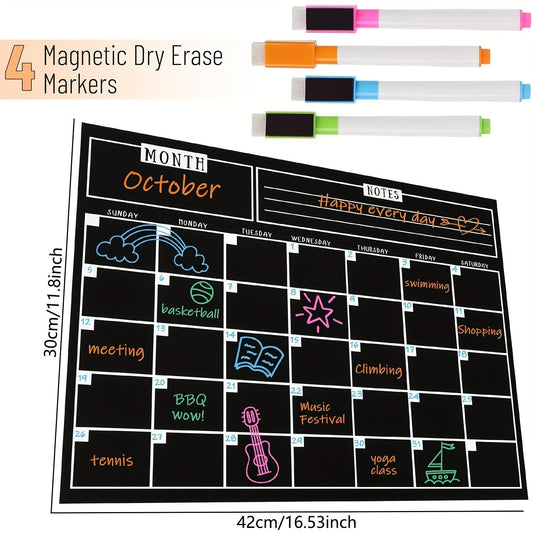 [Efficient] Sleek Black Magnetic Dry Erase Calendar for Fridge - 37.34 x 29.97cm PET Material, Monthly Planner with Weekly Notes & 4 Colorful Markers, Ideal for Organizing Family Activities & Reminders