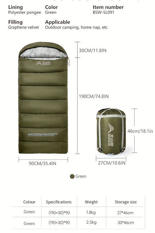 1-Person BISINNA Envelope-Style Sleeping Bag with Full-Zip Closure - Heavy-Duty Synthetic, Olive Green/Beige/Grey/White - Winter Warmth for Camping, Hiking & Backpacking - Portable Half-Zip Design Sleeping Pad Compatible Bag,