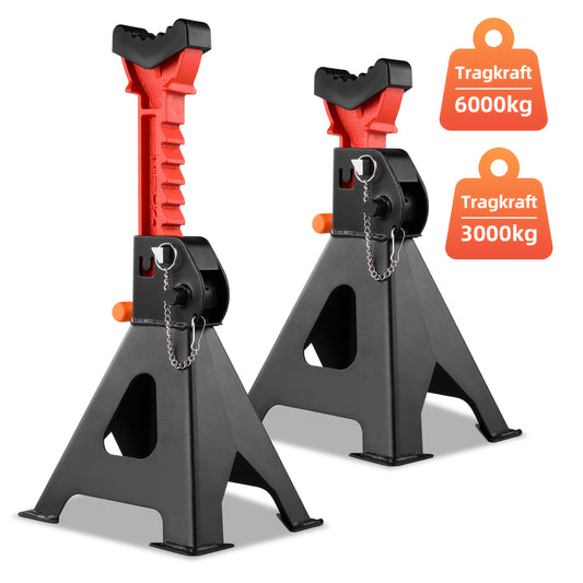 1-Pair Heavy Duty 6-Ton (12,0.0 g) & 3-Ton (6,0.0 g) Capacity Steel Jack Stands with Interlocking Stability, Secure Latches & Rubber Caps - Alloy Steel Construction, A-Frame Design for Car Repair, Vehicle Maintenance, Garage,