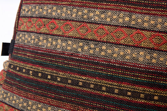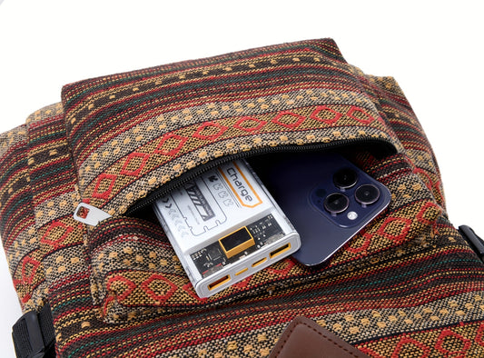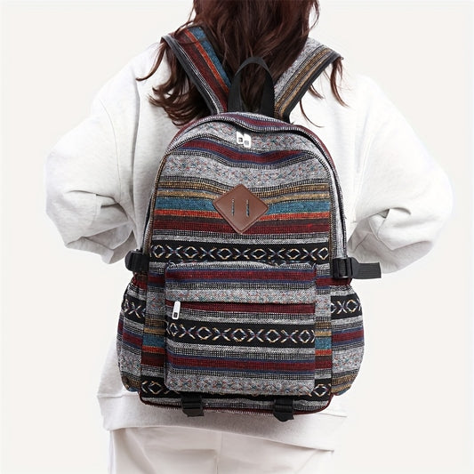 2025 vintage style backpack with adjustable straps, multiple compartments in brown, red, blue, and gray, large capacity travel and vacation backpack, travel backpack