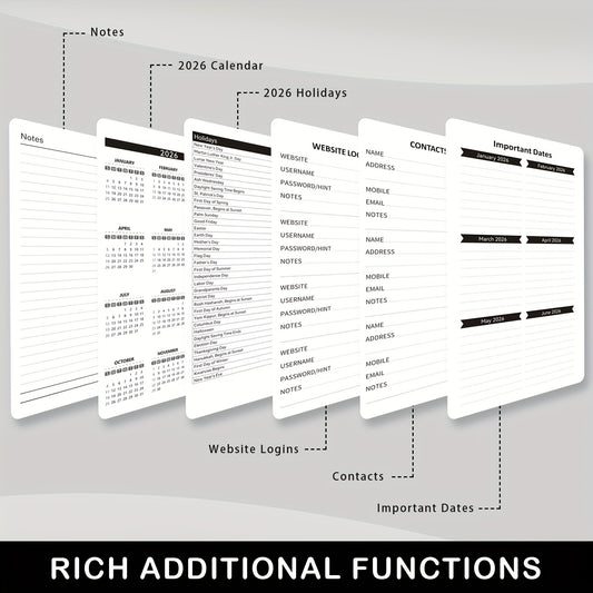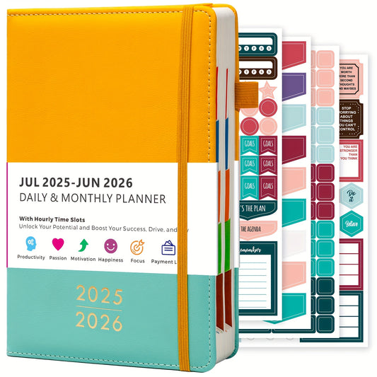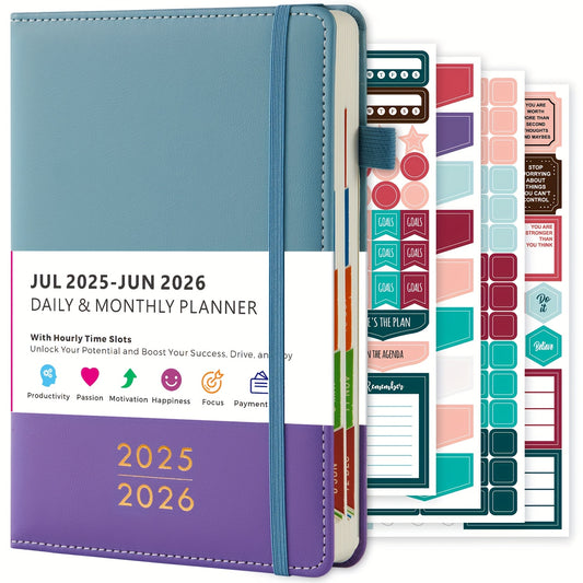 2025-2026 Academic Planner with 12-Month Labels - Daily & Monthly Time Management Organizer, Bookmark Section, Faux Leather Cover, 21.34cm x 14.48cm Back-to-School Planner for Adults, Academic Planner Notebook, Organized Layo