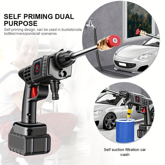 21V Cordless Electric Pressure Washer with 1300mAh Battery & Charger - Heavy-Duty Portable Handheld Power Washer, Lithium-Ion Battery-Powered, Ergonomic Design with Adjustable Nozzle & Hose Connector for Cars, Floors, Garden,