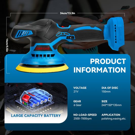 21V Buffer Polisher, 150mm Sand Disc Buffer Polisher for Car Detailing, with Polish And Wax Function, 5000RPM, Electric Polishing Tool for Car And Furniture, Home Bathroom Wall Cleaning, Suitable for Yofidra Batteries