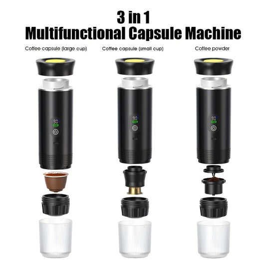 2025 Upgrade Portable Espresso Machine with Temperature & Battery Display, Type-C Charging, Auto Heating, Hot & Cold Brew, Compatible with Ground & Capsules, Ideal for RV, Hiking, Office