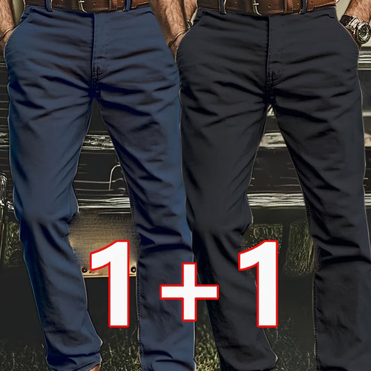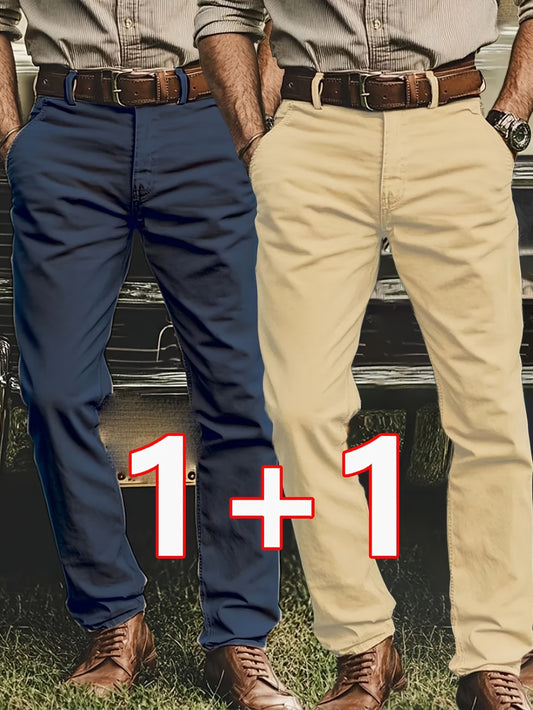 2pcs Men'S Stretch Chino Pants - Straight-Leg Business Casual Trousers with Elastic Waistband, All-Season Formal & Everyday Pants for Office, Meetings, And Casual Attire, Office Wear, Modern Trousers, Comfortable Fit, Versati
