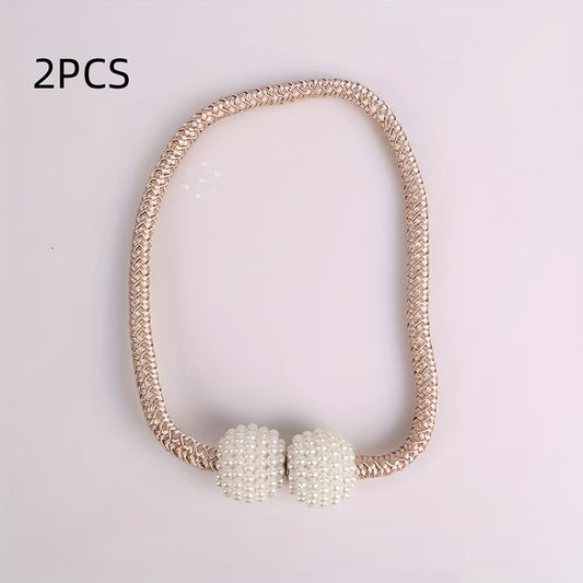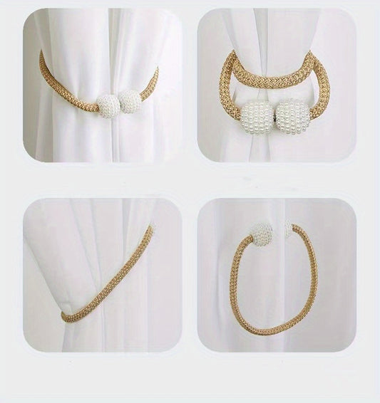 2pcs Large Modern Magnetic Curtain Tiebacks - Elegant Pearl Design, Easy-to-Use, Stylish Window Treatment Holdbacks for Home Decor, Curtains for Living Room