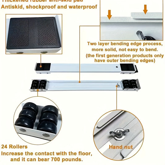 2pcs Heavy-Duty Plastic Furniture Movers with 360° Swivel Casters - 46.5cm to 72cm Height Adjustable, 18.3in to 28.3in Width, 4cm Thickness for Washing Machines, Dryers, Appliances & Home Furniture, Furniture Movers, Laundry
