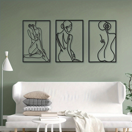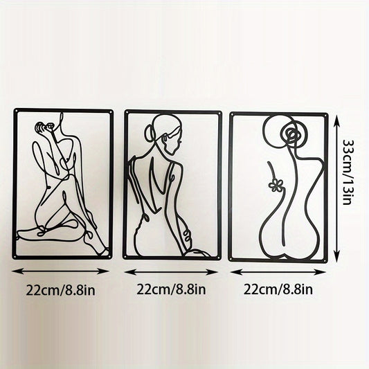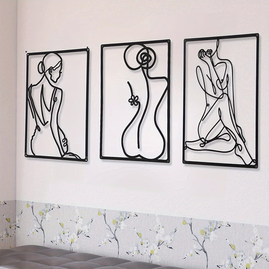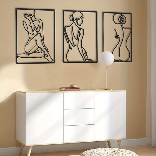 3 pcs Modern Abstract Metal Wall Sculpture - Thick Real Metal Minimalist Art for Home Decor - Single Line Design for Bedroom, Living Room, and Wall Crosses