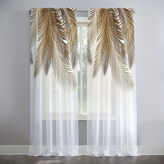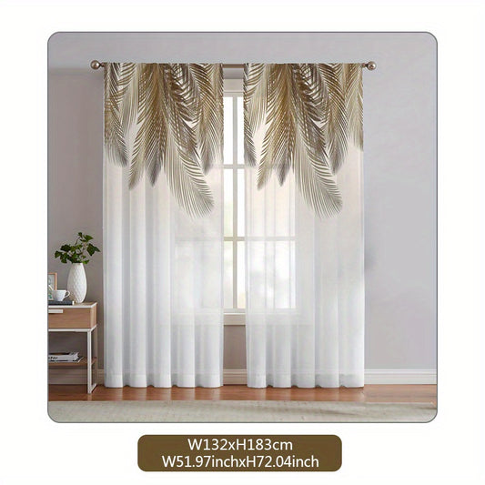 2pcs Yellow Feather Pattern Curtain, Rod Pocket Window Treatment For Bedroom Office Kitchen Living Room Study Home Decor