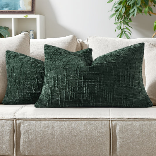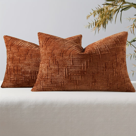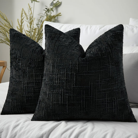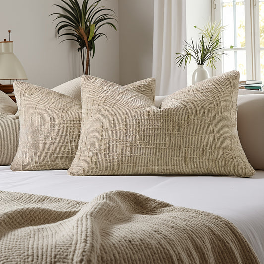 2pcs, Chenille Throw Pillow Covers Set of 2 Thick Textured Slubby Couch Pillow Covers Farmhouse Accent Modern Neutral Decorative Pillow Cases for Bed Sofa, Living Room, Machine Washable
