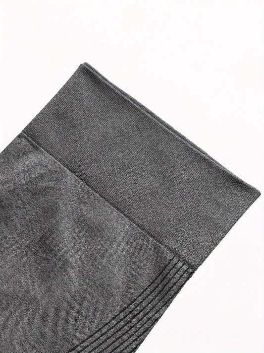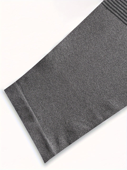 2pcs Women's High-Waisted Yoga Leggings Tummy Control Butt-Lifting Workout Pants - Solid Black & Dark Grey Full-Length Gym Pants with Vertical Striped Waistband-Like Texture, Opaque Non-Sheer Machine Washable All-Season Athle