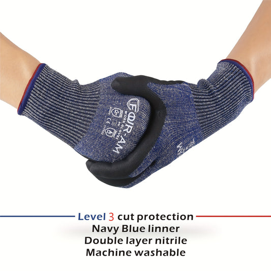 3 Pairs of Level 3 Cut-Resistant Work Gloves with Firm Non-Slip Grip, Durable & Breathable Nitrile Foam Coating, and Touchscreen Compatible 3D-Comfort Fit