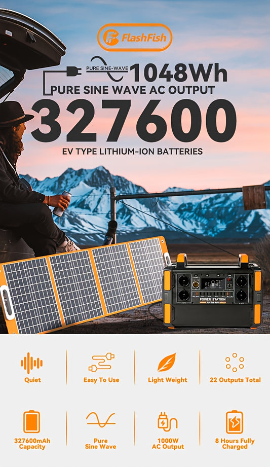 1000W Lifepo4 Battery Solar Power Generator 1041.6Wh 230V (2000W Surge) Emergency LFP Battery Power Generator with 4*AC Solar Power Station, 19 output socket Portable Power Station for Emergency/Outdoor camping/RV/Home/Comput