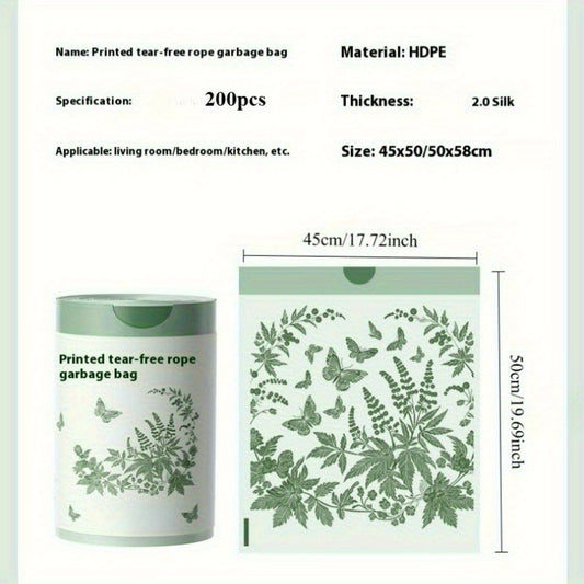 100pcs Disposable Drawstring Trash Bags with Mint and Herb Scented Floral Print - Thick Plastic, Tear-Resistant Portability for Home Kitchen Bathroom Party Use | Decorative Garbage Bag