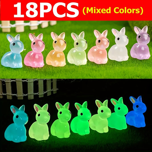 10/18/36pcs Cute Mini Luminous Resin Bunnies Ornament Glow In The Dark Miniature Figurines Rabbit Micro Landscape Fairy Garden Accessories