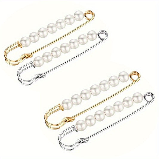 4pcs Faux Pearl Waist Pin Scarf Safety Hijab Clip Shawl Buckle Pin Brooch Sweater Pins Brooches for Women