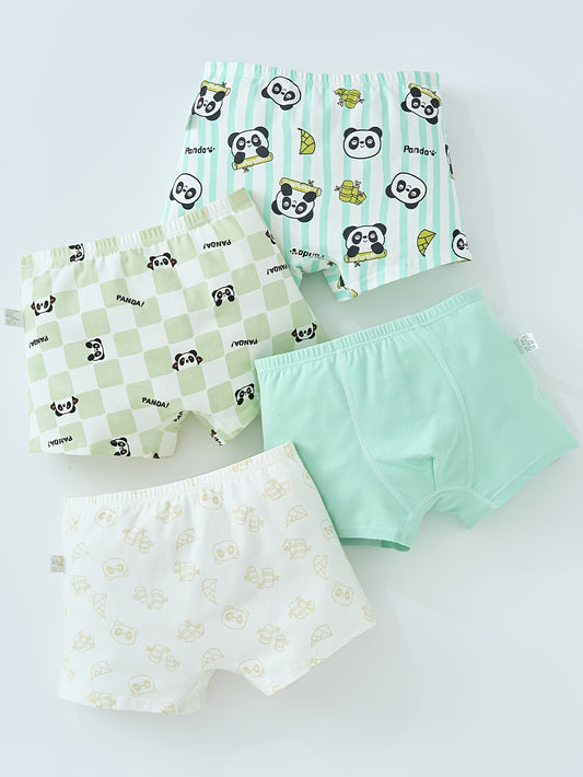 4pcs Boys Cotton Underwear Soft Breathable Cartoon Panda Pattern Comfy Boxers Briefs