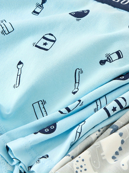 4pcs Boys' Boxer Briefs - Soft Stretchy Underwear with Cute Cartoon Astronaut & Space-Themed Designs, Breathable All-Season Comfort, Regular Fit for Youngsters & Youngsters, Youngsters Underwear, Playful Youngsters' Apparel,