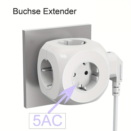 5-in-1 EU Standard Power Socket, 5-EU Plug Wall Extension Outlet – Solve Insufficient Outlets in Living Room, Bedroom, Office & Kitchen