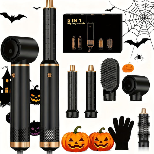 5-In-1 Hot Air Styler Brush – Electric Hair Straightener & Curling Iron with Interchangeable Attachments, Hot Air Brush for Wet Or Dry Hair, Hair Straightening Drying Curling Products